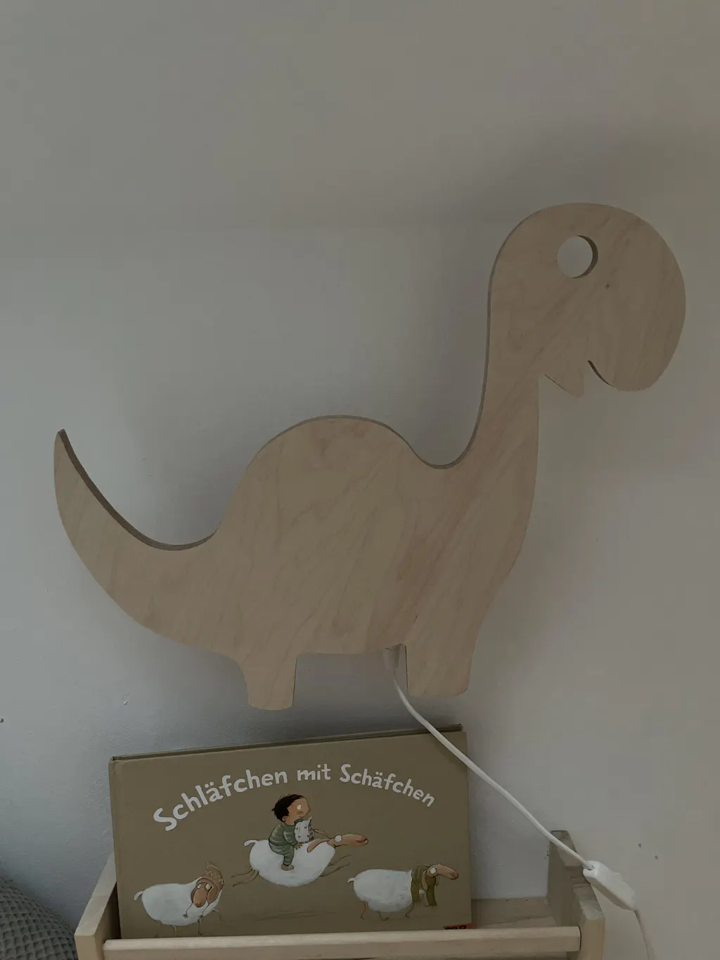 Ta duża lampa ścienna jest wyjątkowa, ponieważ jest większa niż większość lamp nocnych. Lampka dziecięca wykonana jest z drewna. To jest dokładnie to, czego potrzebujesz w pokoju dziecięcym, jeśli Twoje dziecko na przykład boi się ciemności! Ta lampa ścienna wygląda wyjątkowo modnie także na ścianie pokoju dziecięcego! Kształt dinozaura sprawia, że oglądanie go jest szczególnie przyjemne.